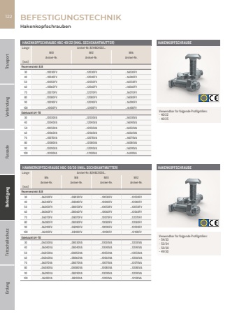 Fassade Befestigung Trittschallschutz Erdung Transport Verbindung122HAKENKOPFSCHRAUBE HBC-40/22 (INKL. SECHSKANTMUTTER)L%u00e4nge Artikel-Nr. 82HBC4022%u2026M10 M12 M16Artikel-Nr. Artikel-Nr. Artikel-Nr.[mm]Feuerverzinkt 8.830 ...10030FV ...12030FV ...16030FV40 ...10040FV ...12040FV ...16040FV50 ...10050FV ...12050FV ...16050FV60 ...10060FV ...12060FV ...16060FV70 ...10070FV ...12070FV ...16070FV80 ...10080FV ...12080FV ...16080FV90 ...10090FV ...12090FV ...16090FV100 ...10100FV ...12100FV ...16100FVEdelstahl A4-7030 ...10030VA ...12030VA ...16030VA40 ...10040VA ...12040VA ...16040VA50 ...10050VA ...12050VA ...16050VA60 ...10060VA ...12060VA ...16060VA70 ...10070VA ...12070VA ...16070VA80 ...10080VA ...12080VA ...16080VA90 ...10090VA ...12090VA ...16090VA100 ...10100VA ...12100VA ...16100VAHAMMERKOPFSCHRAUBE HBC-50/30 (INKL. SECHSKANTMUTTER)L%u00e4nge Artikel-Nr. 82HBC5030%u2026M6 M8 M10 M12Artikel-Nr. Artikel-Nr. Artikel-Nr. Artikel-Nr.[mm]Feuerverzinkt 8.830 ...06030FV ...08030FV ...10030FV ...12030FV40 ...06040FV ...08040FV ...10040FV ...12040FV50 ...06050FV ...08050FV ...10050FV ...12050FV60 ...06060FV ...08060FV ...10060FV ...12060FV70 ...06070FV ...08070FV ...10070FV ...12070FV80 ...06080FV ...08080FV ...10080FV ...12080FV90 ...06090FV ...08090FV ...10090FV ...12090FV100 ...06100FV ...08100FV ...10100FV ...12100FVEdelstahl A4-7030 ...06030VA ...08030VA ...10030VA ...12030VA40 ...06040VA ...08040VA ...10040VA ...12040VA50 ...06050VA ...08050VA ...10050VA ...12050VA60 ...06060VA ...08060VA ...10060VA ...12060VA70 ...06070VA ...08070VA ...10070VA ...12070VA80 ...06080VA ...08080VA ...10080VA ...12080VA90 ...06090VA ...08090VA ...10090VA ...12090VA100 ...06100VA ...08100VA ...10100VA ...12100VABEFESTIGUNGSTECHNIKHAKENKOPFSCHRAUBEHAKENKOPFSCHRAUBEVerwendbar f%u00fcr folgende Profilgr%u00f6%u00dfen:- 40/22- 40/25Verwendbar f%u00fcr folgende Profilgr%u00f6%u00dfen:- 54/33- 52/34- 50/30- 49/30Hakenkopfschrauben