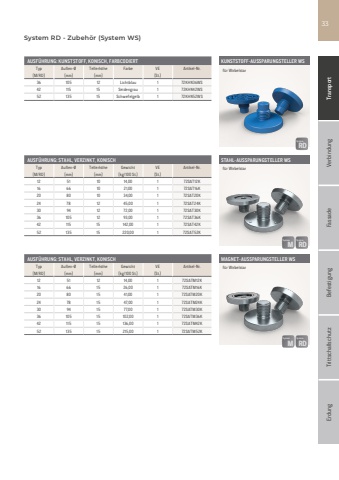 Fassade Befestigung Trittschallschutz Erdung Transport Verbindung33AUSF%u00dcHRUNG: STAHL, VERZINKT, KONISCHTyp Au%u00dfen-%u00d8 Tellerh%u00f6he Gewicht VE Artikel-Nr.[M/RD] [mm] [mm] [kg/100 St.] [St.]12 51 10 14,00 1 72SAT12K16 66 10 21,00 1 72SAT16K20 80 10 34,00 1 72SAT20K24 78 12 45,00 1 72SAT24K30 94 12 72,00 1 72SAT30K36 105 12 93,00 1 72SAT36K42 115 15 142,00 1 72SAT42K52 135 15 220,00 1 72SAT52KAUSF%u00dcHRUNG: KUNSTSTOFF, KONISCH, FARBCODIERTTyp Au%u00dfen-%u00d8 Tellerh%u00f6he Farbe VE Artikel-Nr.[M/RD] [mm] [mm] [St.]36 105 12 Lichtblau 1 72KHN36WS42 115 15 Seidengrau 1 72KHN42WS52 135 15 Schwefelgelb 1 72KHN52WSAUSF%u00dcHRUNG: STAHL, VERZINKT, KONISCHTyp Au%u00dfen-%u00d8 Tellerh%u00f6he Gewicht VE Artikel-Nr.[M/RD] [mm] [mm] [kg/100 St.] [St.]12 51 12 14,00 1 72SATM12K16 66 15 26,00 1 72SATM16K20 80 15 41,00 1 72SATM20K24 78 15 47,00 1 72SATM24K30 94 15 77,00 1 72SATM30K36 105 15 102,00 1 72SATM36K42 115 15 136,00 1 72SATM42K52 135 15 215,00 1 72SATM52KSTAHL-AUSSPARUNGSTELLER WSMAGNET-AUSSPARUNGSTELLER WSf%u00fcr Wirbelstarf%u00fcr WirbelstarKUNSTSTOFF-AUSSPARUNGSTELLER WSf%u00fcr WirbelstarSystem RD - Zubeh%u00f6r (System WS)RDRDSystemMMSystemRDRDSystemMMSystemRDRDSystem