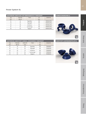 Fassade Befestigung Trittschallschutz Erdung Transport Verbindung43AUSF%u00dcHRUNG: KUNSTSTOFF, MIT BEWEHRUNGSCLIP, FARBCODIERTTyp Gewinde Farbe VE Artikel-Nr.[SL] [M-LH] [St.]16 16 Signalblau 100 74KR16CLIPSL24 24 Signalgelb 100 74KR24CLIPSL30 30 Lehmbraun 100 74KR30CLIPSL42 42 Lachsorange 100 74KR42CLIPSL52 52 Opalgr%u00fcn 100 74KR52CLIPSLAUSF%u00dcHRUNG: KUNSTSTOFF, KONISCH, LINKSGEWINDE, FARBCODIERTTyp Gewinde Au%u00dfen-%u00d8 Farbe VE Artikel-Nr.[SL] [M-LH] [mm] [St.]16 16 40 Signalblau 100 72KHN16SL24 24 55 Signalgelb 100 72KHN24SL30 30 70 Lehmbraun 100 72KHN30SL42 42 96 Lachsorange 100 72KHN42SL52 52 96 Opalgr%u00fcn 100 72KHN52SLKENNZEICHNUNGSRING SLKUNSTSTOFF-AUSSPARUNGSTELLER SLPower System SLSLSLSystemSLSLSystem