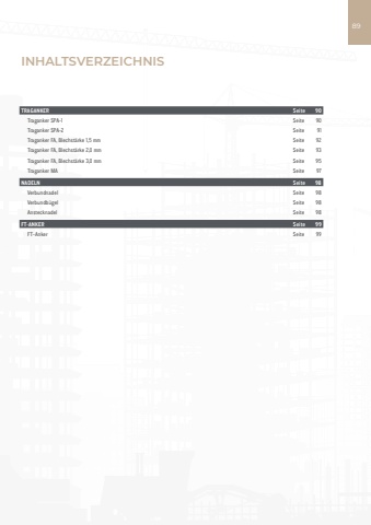 Fassade Befestigung Trittschallschutz Erdung Transport Verbindung89TRAGANKER Seite 90Traganker SPA-1 Seite 90Traganker SPA-2 Seite 91Traganker FA, Blechst%u00e4rke 1,5 mm Seite 92Traganker FA, Blechst%u00e4rke 2,0 mm Seite 93Traganker FA, Blechst%u00e4rke 3,0 mm Seite 95Traganker MA Seite 97NADELN Seite 98Verbundnadel Seite 98Verbundb%u00fcgel Seite 98Anstecknadel Seite 98FT-ANKER Seite 99FT-Anker Seite 99INHALTSVERZEICHNIS